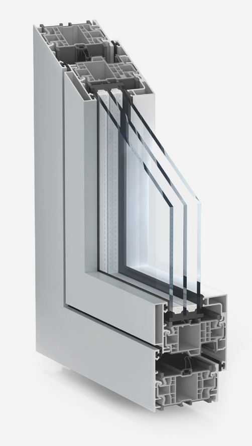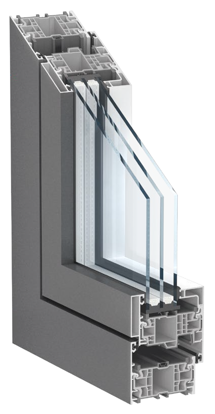 Un innovador sistema híbrido que fusiona PVC 100% reciclado con aluminio, consiguiendo aunar las ventajas de los dos materiales. Este sistema de 76 mm de profundidad destaca por el perfecto acabado de sus esquinas soldadas, que refuerza la estabilidad mecánica del conjunto.