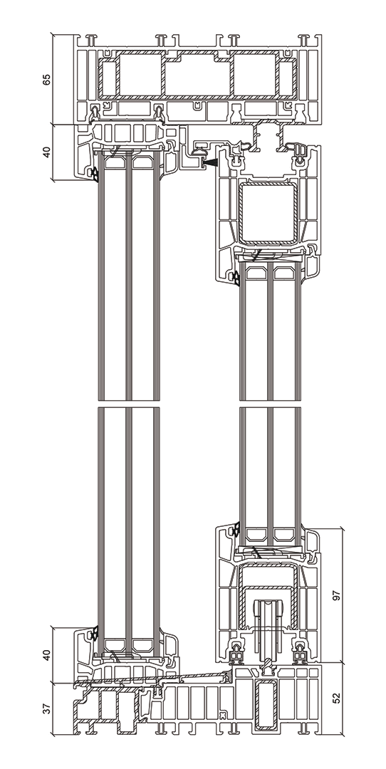 - La corredera-elevadora PremiDoor76 con triple junta central consigue un valor de transmitancia manteniendo refuerzos de acero zincado de alta inercia que le permite realizar cerramientos de grandes dimensiones con la máxima resistencia y estabilidad.